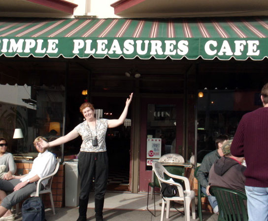 Alicia eats a cookie in San Francisco