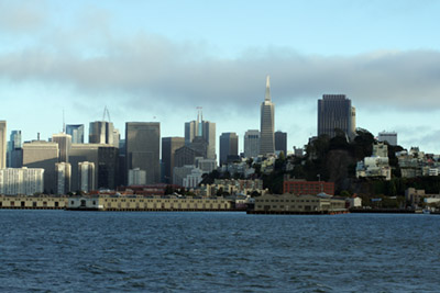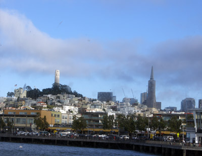 San Francisco - Salesforce tower under construction between Coit Tower & Transamerica